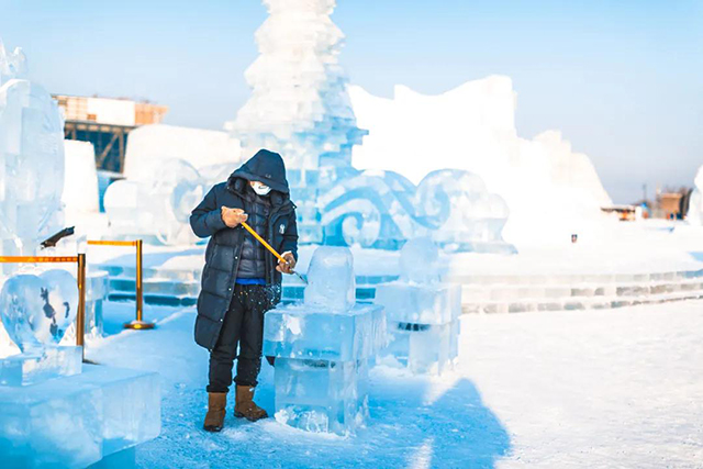 在冰雪大世界里学冰雕