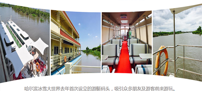 哈尔滨冰雪大世界去年首次设立的游艇码头,吸引众多朋友及游客前来游玩。引进全新封闭式游艇,开通水上游览专线,乘客经过路线为哈尔滨九站码头乘船经一湖三岛直接到达哈尔滨冰雪大世界西区。沿途可欣赏松花江湿地美景,远观大剧院全景,游船路线水域广阔,植物多样,争奇斗艳的荷花、水中荡漾的芦苇、绿草的清香,乘船感受哈尔滨之夏的魅力。园区内可承接团队聚餐、商务宴请、会议洽谈、新品发布、企业年会等各类活动。