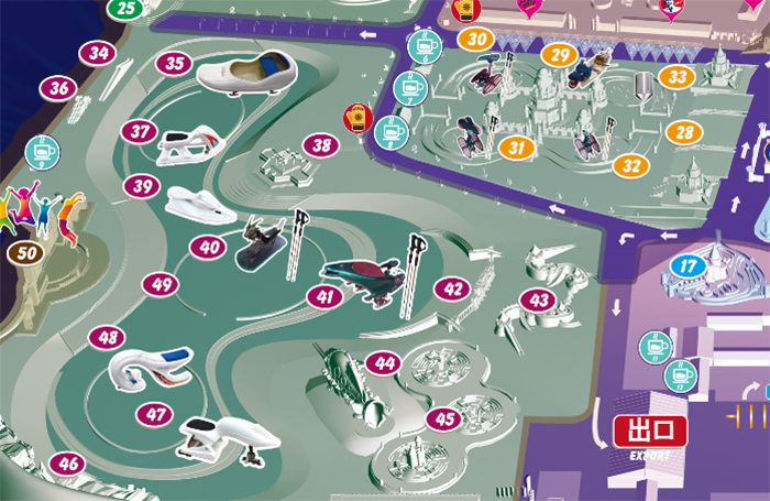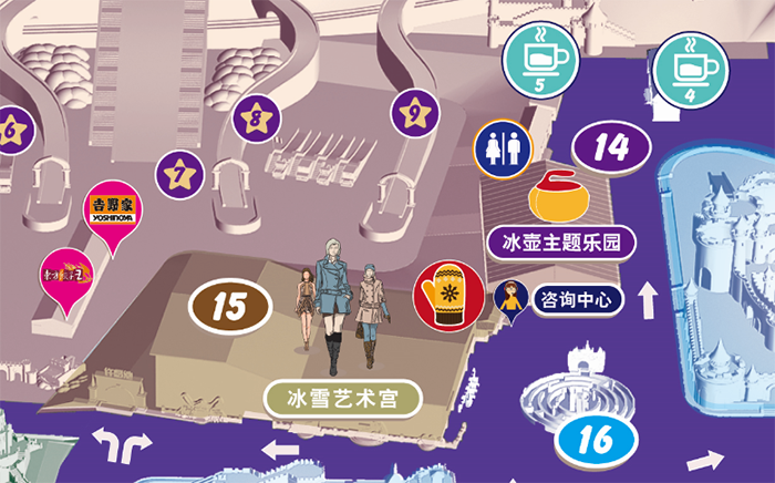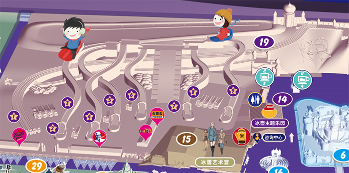 15:00 来冰海运动会(热舞风暴大舞台冰面),体验全新的30 多种游乐设施,必玩项目如下: