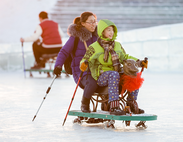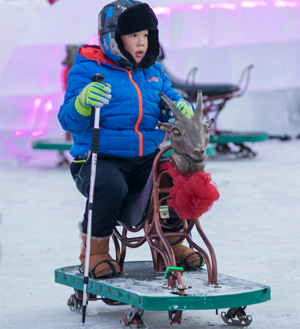 快来选择属于你的生肖坐骑,在冰面上越野驰骋一番,大有唯我独尊之气势,同样是考验臂力哦,还有转弯哦!