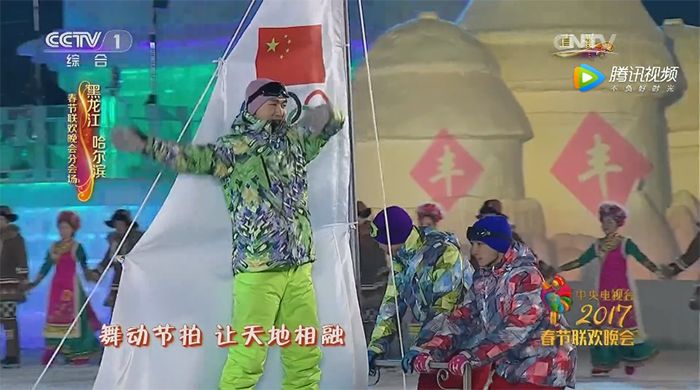 “舞动冰雪画一道彩虹,每个笑容可以把梦想播种;舞动节拍让天地沸腾,彩色的感动放飞中国梦!” 玖月奇迹演唱一曲《冰雪彩虹》,奔放的热情与冰冷纯净的冰雪景观相融!