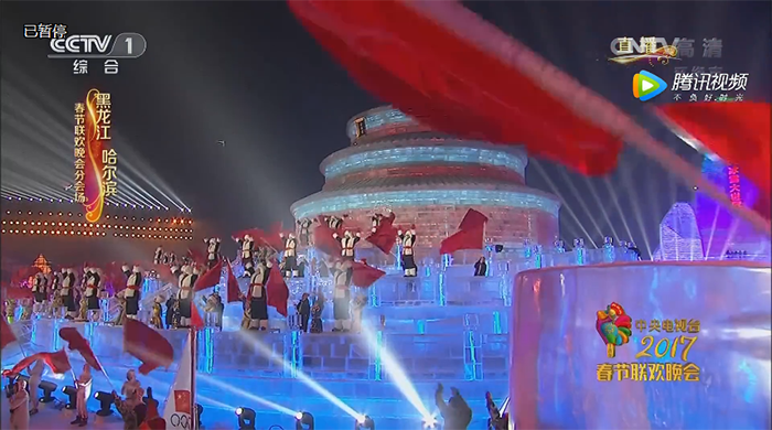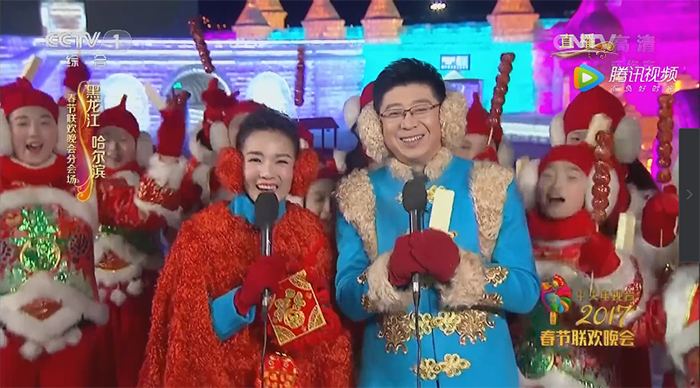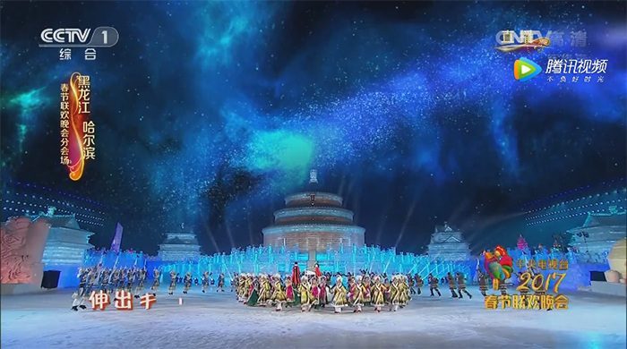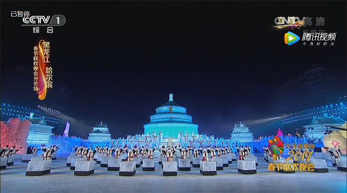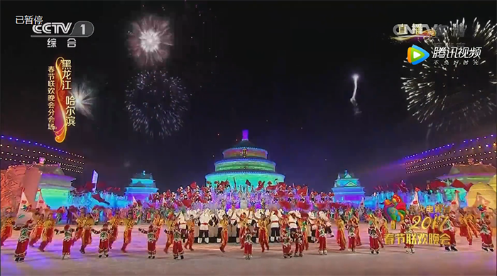 “破冰贺新岁、筑冰迎春来!这一刻我们共同祝愿全国人民在丁酉新年里,平平安安、大吉大利!”随着主持人激情澎湃的祝福贺词,央视春晚哈尔滨分会场迎来了晚会的高潮!
