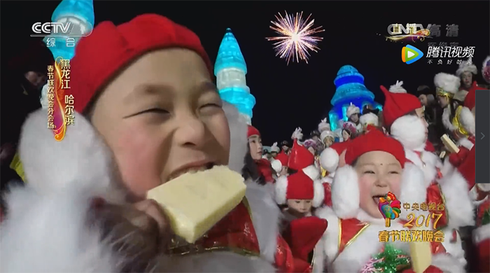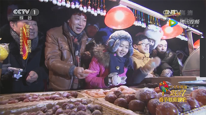 冰雪王国的梦幻与美丽在屏幕上完美呈现,糖葫芦、冰棍、冻柿子、烤串、大秧歌等独具龙江特色的食品和民俗项目也在电视画面中欢乐展现!