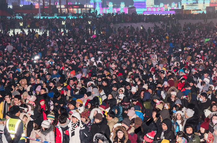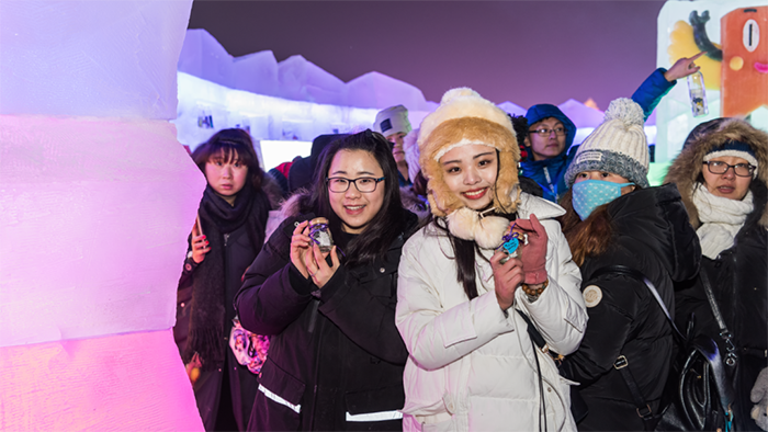 为了迎接新年,把更多的好朋友聚到一起共同跨年,冰雪大世界向游客提供了160元跨年夜活动的特价门票优惠福利。从12月27日开始,仅仅4天时间,线上跨年优惠票就售出了近10000张,火热程度可见非凡!园区内随处可见人潮涌动的壮观景象:人们吃着糖葫芦、挑选精美的照片、吃着热气腾腾的汤面和饺子……大家嬉笑玩耍、乐此不疲!