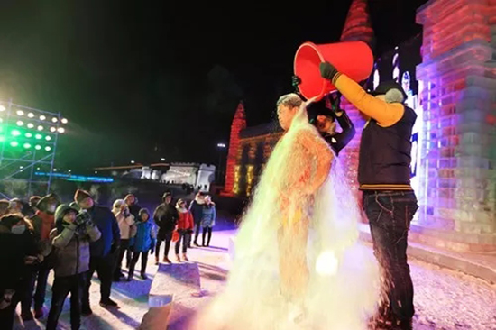 夜晚绚丽的灯光将冰雪建筑幻化成美轮美奂的梦幻世界