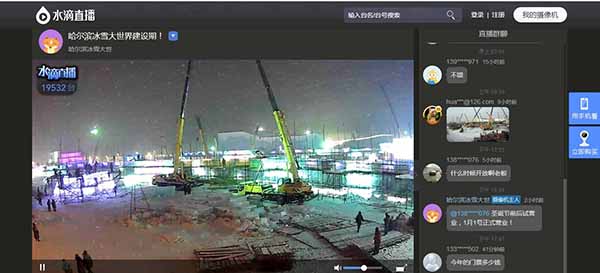 进入【360水滴直播】,首页即可观看冰雪大世界建造直播。