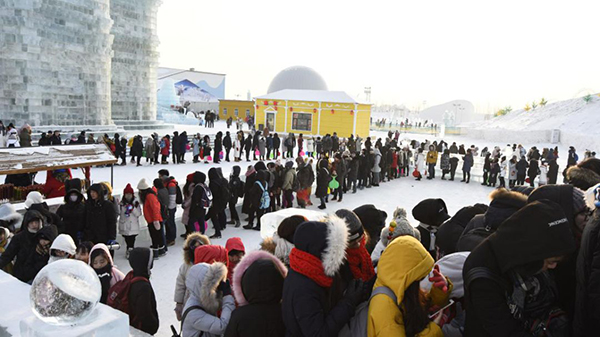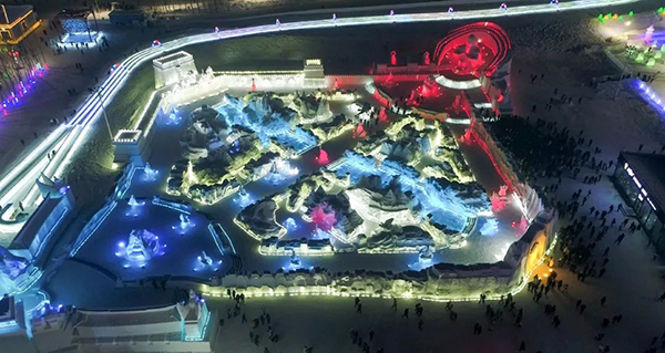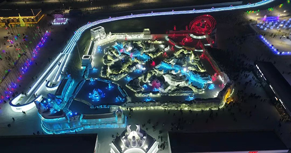 哈尔滨冰雪大世界检票厅22:00实景