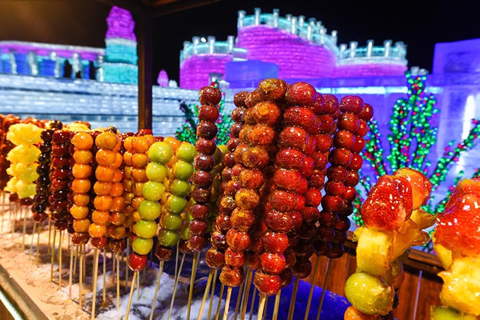 映入眼帘的就是红彤彤的,让人垂涎欲滴的冰糖葫芦!
