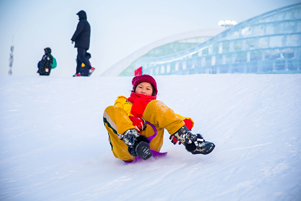 这里除了有冰湖还有雪湖,这里是小朋友欢乐的小天地,小朋友手持小滑板从雪坡上自由滑下,放声大笑。这里定能博得孩子的欢心,家长们一定要带孩子玩玩!