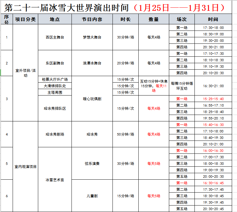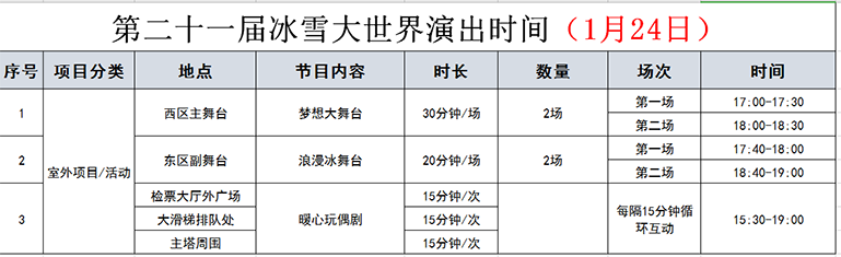 第二十一届哈尔滨冰雪大世界 春节期间运营时间及演出时间通知