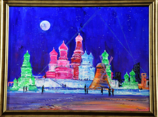 “哈尔滨冰雪大世界”是当今世界最大的冰雪主题游乐园,她以冰雪艺术、冰雪演艺、冰雪运动、冰雪建筑而著称于世。为了让瞬间的精彩变为永恒的存在,哈尔滨冰雪大世界力邀俄罗斯功勋画家叶甫根尼·马克耶夫、弗拉基米尔赫鲁斯托夫等11位著名画家,以历届精品冰雕、雪雕及人文景观等为题材,精心创作了百余幅油画作品。