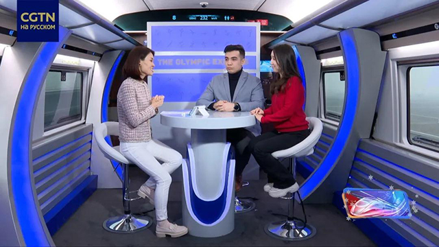 2月3日,CGTN俄语部冬奥特别节目《搭乘5G冬奥列车 共享冰雪盛宴》正式播出。节目中,俄语部记者邀请到乌兹别克斯坦国家通讯社Daryo.uz的驻京记者以及来自哈萨克斯坦的同事,共同乘坐5G冬奥列车,体验在时速350公里的高铁5G超高清演播室做移动直播