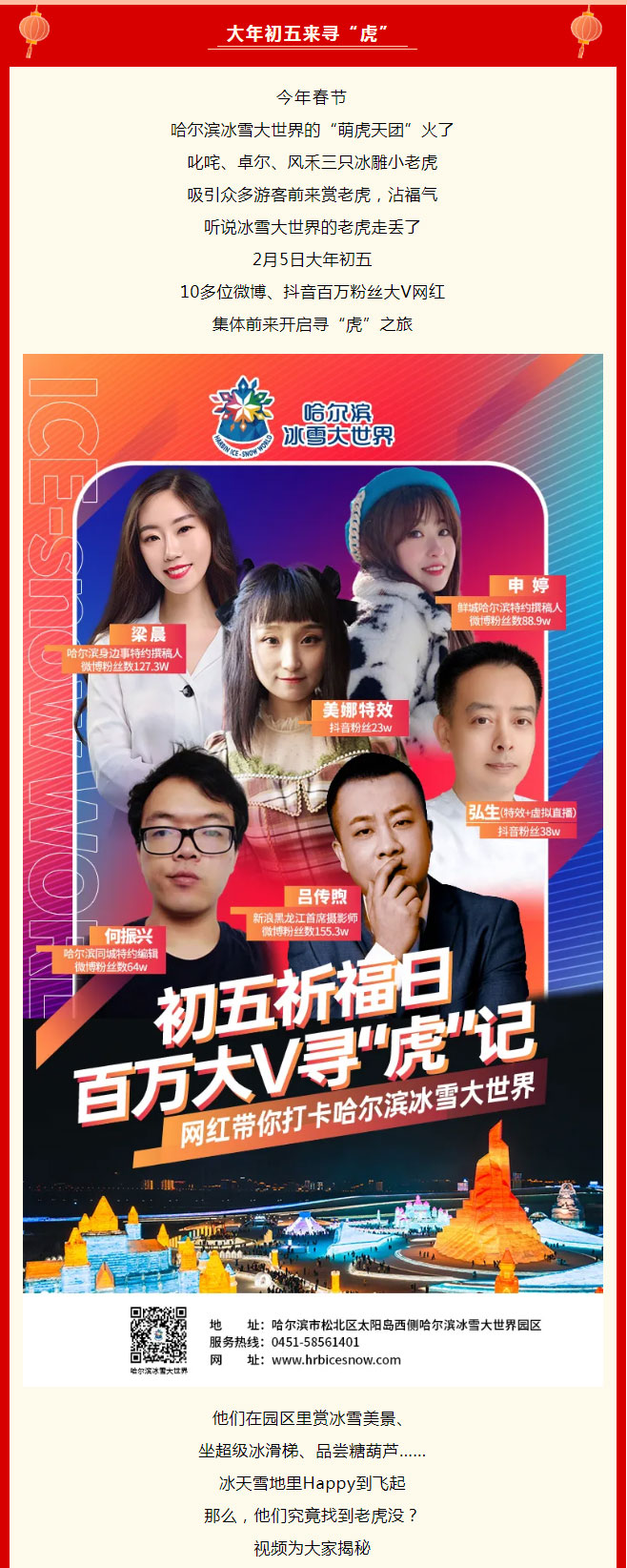 听说老虎在冰雪大世界走丢了,百万粉丝大V开启寻“虎”之旅