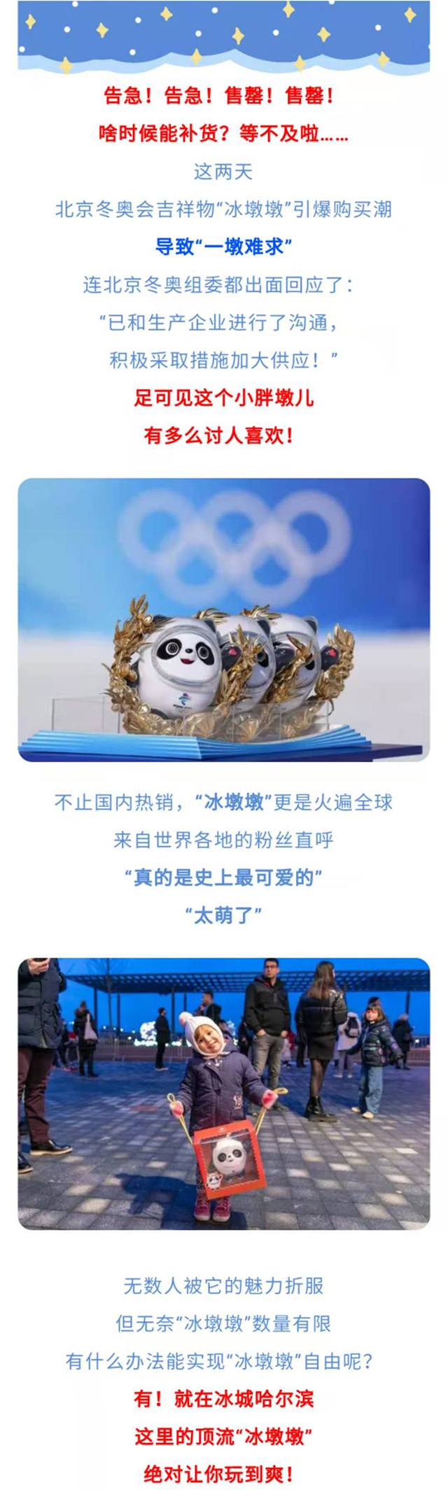 “一墩难求”?顶流“冰墩墩”现身哈尔滨,让你实现“墩墩自由”!