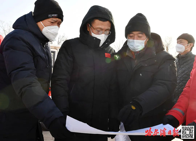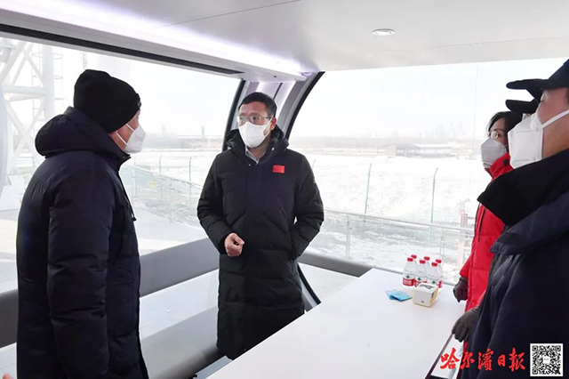 寒冬里的冰雪大世界、太阳岛雪博会一派如火如荼的景象,吊车运、油锯切、匠心雕,现场机械轰鸣,工人们紧张有序在忙碌工作。张起翔先后来到冰雪大世界游客服务中心、VR体验馆、冰建施工现场、雪花摩天轮、太阳岛雪博会主雪雕“逐梦”建设现场、三联码头等处,实地查看项目进展情况、听取相关汇报,看望慰问严寒下奋战在一线的工作人员,叮嘱大家要注意保暖,保护自身安全。