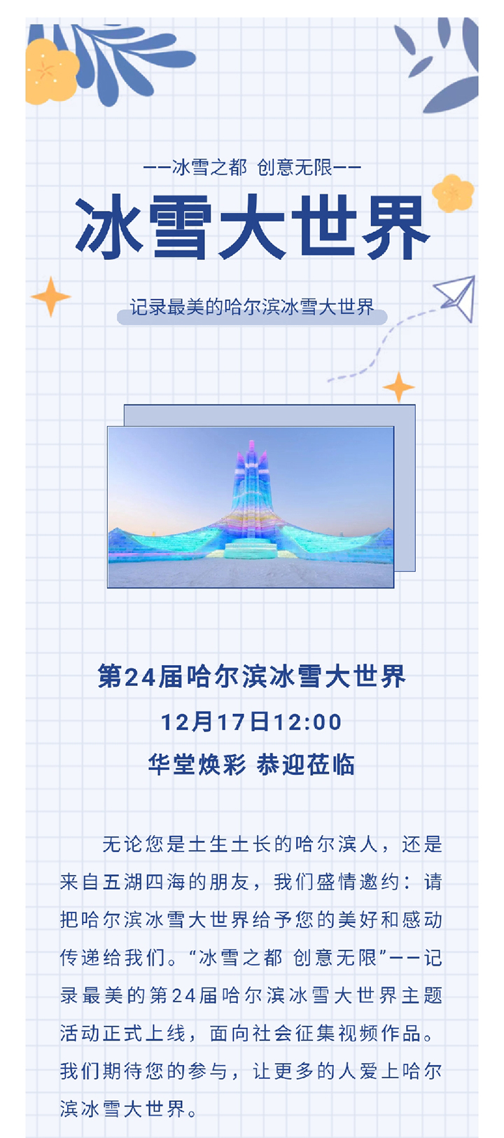 开园倒计时!“冰雪之都 创意无限”视频征集大赛来啦!