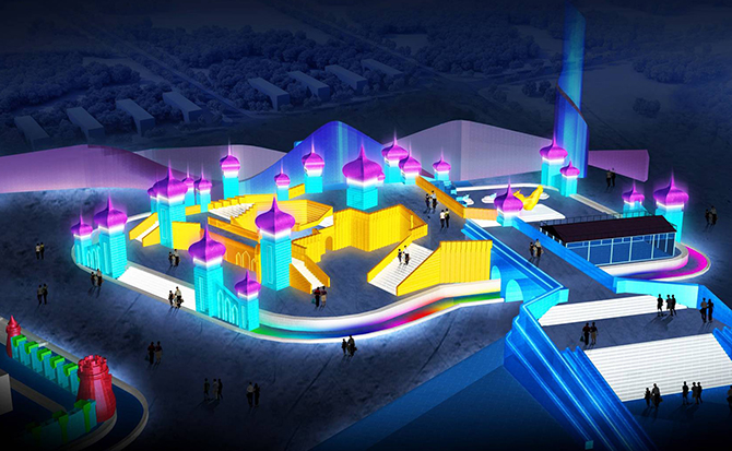 十八座冰峰簇拥起刺破天际的欢乐主塔、流动型曲线勾勒出优美律动的欢乐之门、艺术化手法绘就形态各异的欢乐城堡。错落有致的建筑组成,不同高度的观景平台实现了游人与景观的多维度互动,创造了多视角观赏体验。