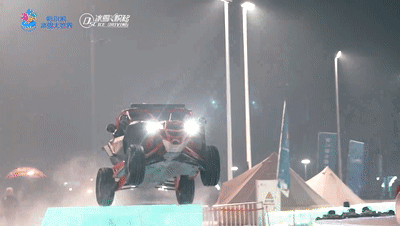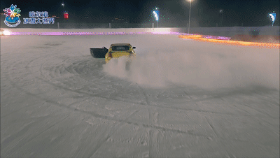 一个冰上汽车特技表演