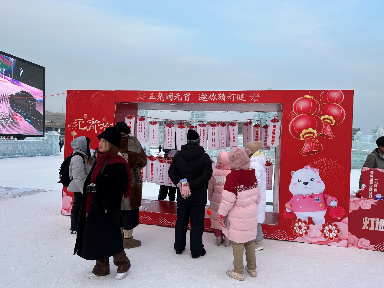 猜灯谜是元宵节必不可少的经典项目。哈尔滨冰雪大世界园区里,已经准备好了有趣的灯谜,等待着智慧爆棚的市民和游客前来挑战,猜对灯谜的小朋友还可以得到花灯一盏。