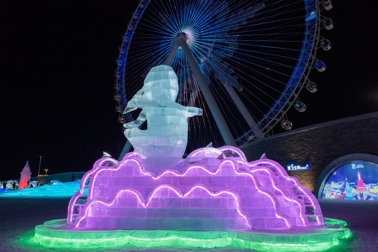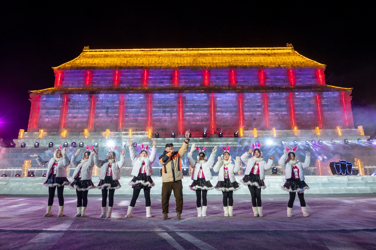 有灯无月不娱人,有月无灯不算春。在哈尔滨冰雪大世界,巧夺天工、流光溢彩的冰灯与皎洁的明月交相辉映。兔年的第一个月圆之夜,在含“兔”量超高的园区赏冰灯,“兔”个好彩头!