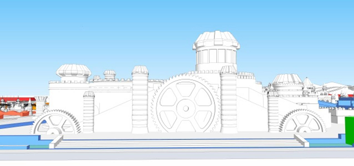 巨大的齿轮造型诠释了工业时代的文明缩影。
