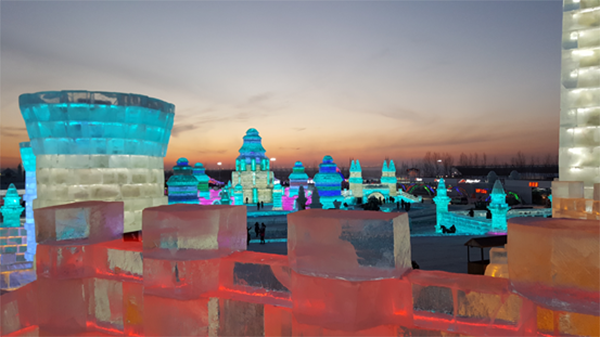 但今年在哈尔滨冰雪大世界冰雪景观上