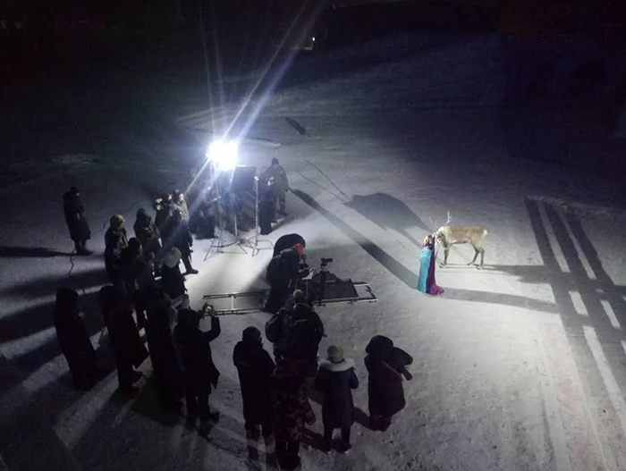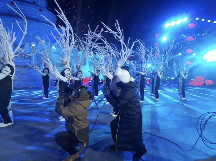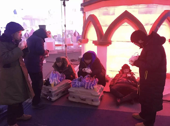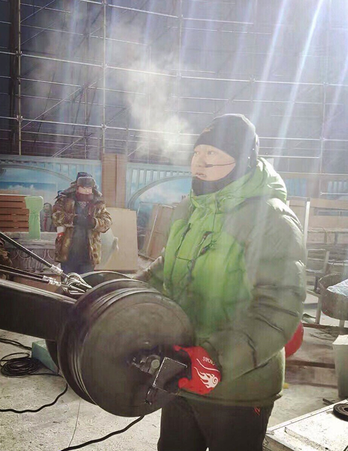 当然除了劳动强度和恶劣环境的考验之外,最让我不安的是镜头的录制。由于现场录制都是在夜间,气温都在零下二十几度。演员们要穿着很薄的演出服演出,其寒冷程度可想而知。