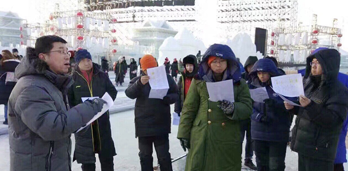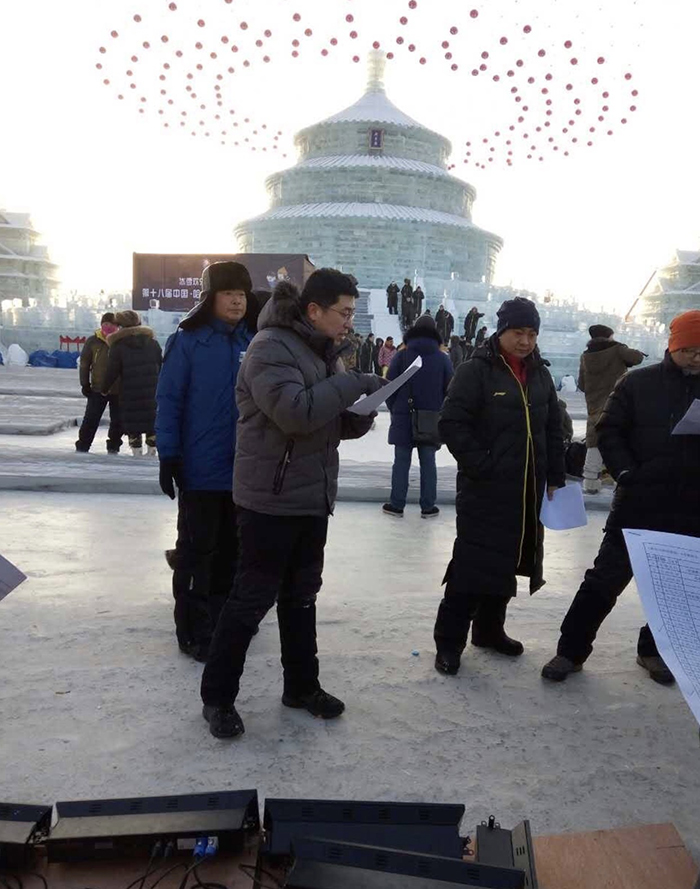 2017年1月1日我们终于开始了为期十天的春晚录制。刚到冰雪大世界,给人的感觉就是寒冷,这里的温度要比市区里低好几度,而且全是露天录制,这将是晚会录制期间最大的障碍和考验。