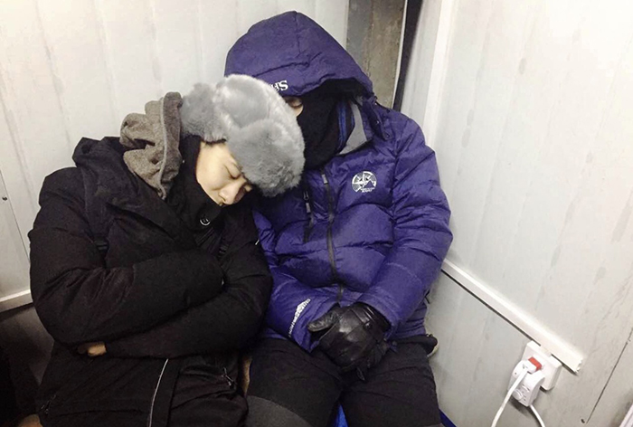 严寒始终在炫耀着他的威严,每天超过12小时的工作强度严重地消耗了大家的体能和免疫力,小伙伴们开始陆续出现发烧的症状。感冒药不知不觉开始在团队中流转,大家也抓紧一切间歇的时间休息。节目进程将半,巨大的考验已经来临,这考验不只是身体上的,更多的是意志力的考验,每天的睡眠时间最少的时候甚至达不到3小时。