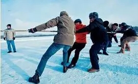 正月十五元宵节滚冰这一天从早到晚的活动丰富多彩,扭秧歌、看彩灯、猜灯谜、观看演出、焰火晚会、滚冰比赛、拾柴等各种传统文化活动一个接着一个,为节日生活增添了浓浓的色彩。正月十五走一走,一年没病精神抖。“走鸿运、拾万财、祛百病”已成为滚冰节的主要民俗之一。