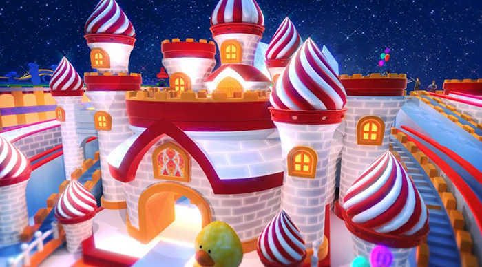 第一轮,两对家长和孩子分别从滑梯滑下,根据滑行距离判断胜负,获胜者晋级下一轮(失败者积2分并被淘汰)。第二轮,晋级的三组家庭,分别滑雪圈比赛,根据滑行距离判断冠亚季军并积分(冠军10分、亚军8分、季军5分)