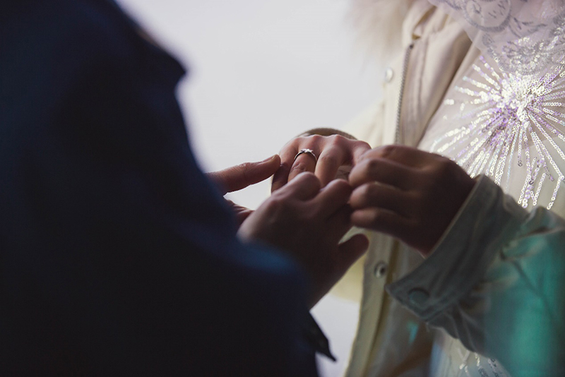 新郎们平日里为战友佩戴勋章的双手,这一次,则为自己的新娘戴上了那颗代表真爱的戒指。