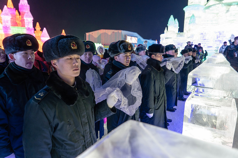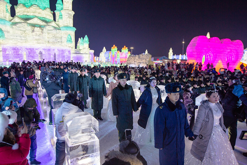1月25日,冰雪大世界内举办了一场极为特别的婚礼,军人夫妇们在冰雪的见证下许下承诺,正式成为夫妻。