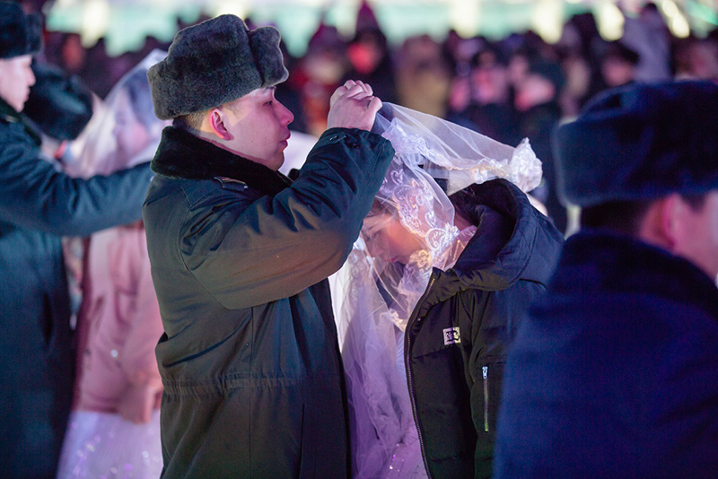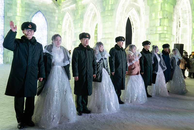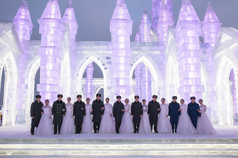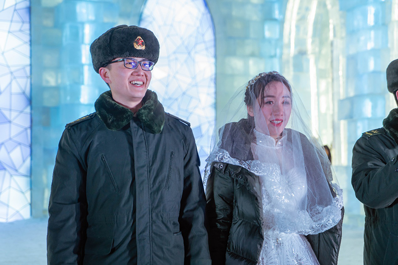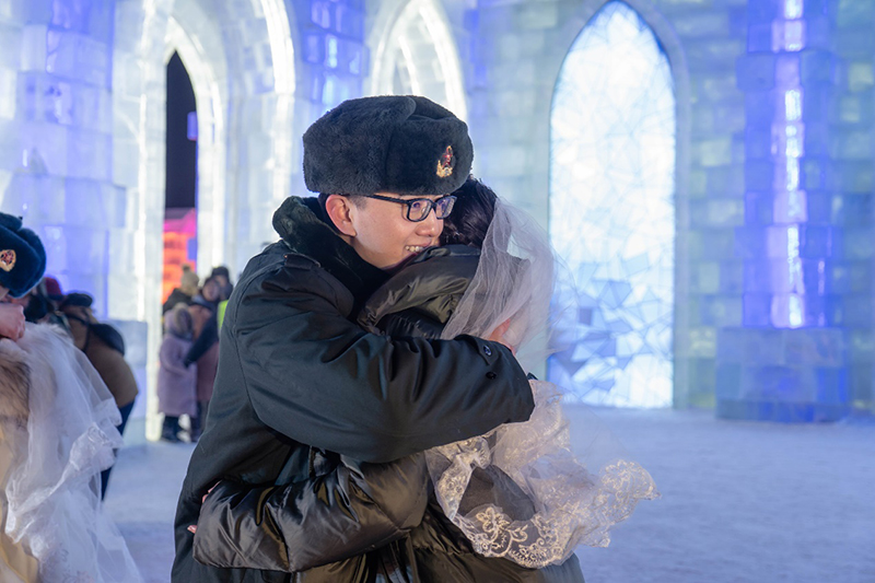 这一次的集体婚礼,新人在战友们的见证下,在满园冰雪璀璨的景观中,完成了自己人生中最重要的时刻。