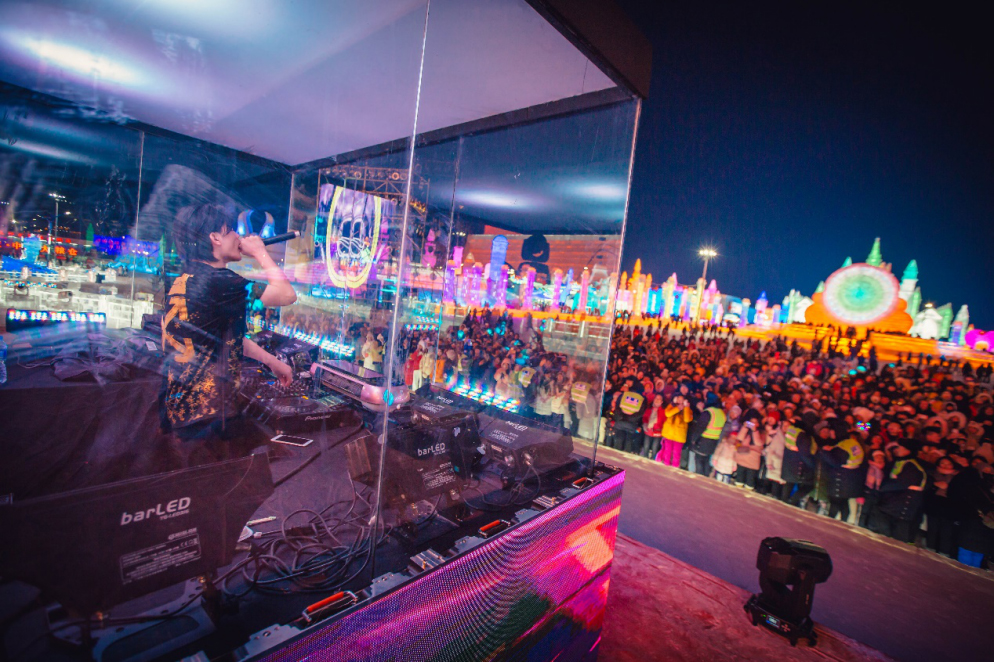 在梦想大舞台,有高9.2米,宽11.5米LED电子屏,两侧酷炫灯光配合劲爆音乐,这次冰雪大世界和哈尔滨本地娱乐风向标奥斯卡和星德罗合作,带来了最潮酷的电音体验。奥斯卡与星德罗麾下的一众实力DJ、MC阵容集结来袭,象征着年轻化、活力与激情的电子音乐带给游客们前所未有的激情盛宴。