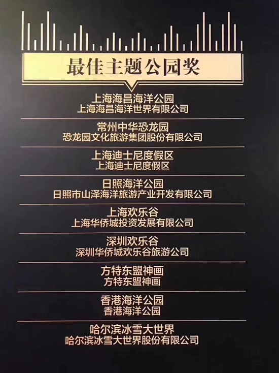 “摩天奖”由中国游艺机游乐园协会创办,旨在表彰中国旅游行业优秀的游乐园、规划设计、游乐设备设施等,以鼓励企业增强品牌意识,推动中国旅游产业健康发展,是公认的游乐行业最重要的奖项之一,被誉为“中国游乐行业的奥斯卡”。本次,哈尔滨冰雪大世界与上海海昌海洋公园、常州中华恐龙园、上海迪士尼度假区、香港海洋公园等9家国内知名景区一同获奖。